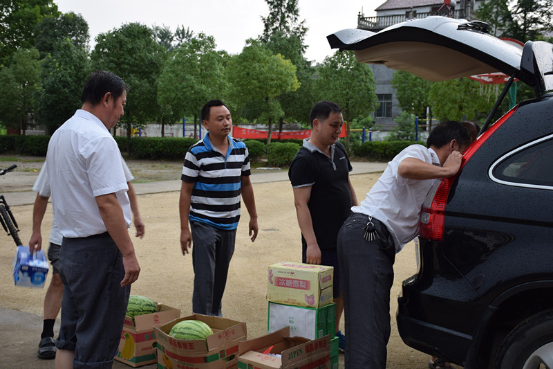 (圖為 社會各界愛心人士給志愿者和孩子們送來防暑降溫的物資)
